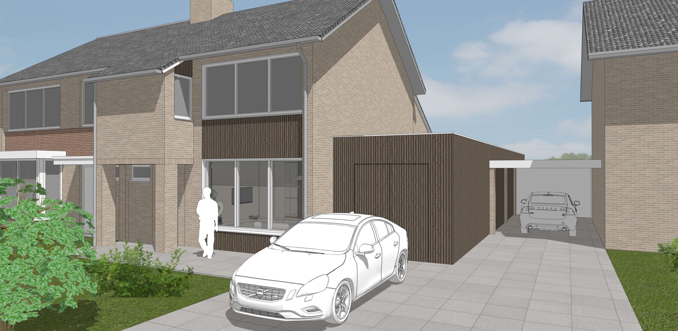 Bij dit project speelde tijdsdruk een grote rol: de wens was om snel te starten met de bouw. Daarom kozen we bewust voor een oplossing binnen de vergunningsvrije kaders. Zowel de uitbouw aan de achterzijde als het betrekken van de carport bij de woning bleken vergunningsvrij mogelijk – met als resultaat een flinke uitbreiding zonder lange procedures.