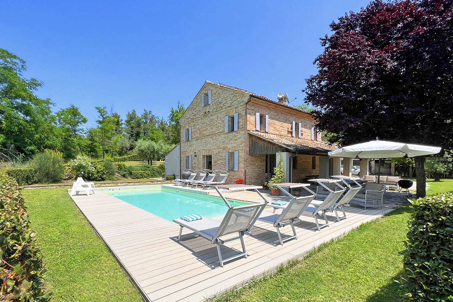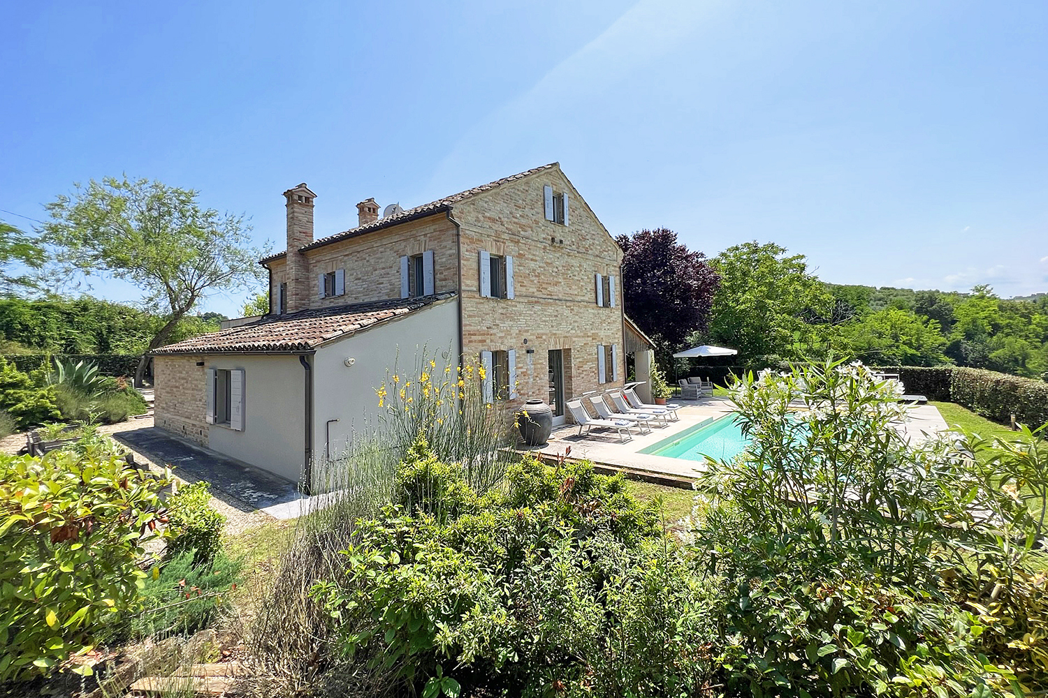 In 2013 startte ik met de transformatie van dit landhuis in Le Marche, Italië. Wat ooit een eenvoudig Marchiaans boerenhuis was, groeide uit tot een luxe vakantievilla waarin historie en modern comfort samenkomen. Voor dit project maakte ik het complete interieurontwerp voor beide verdiepingen én begeleidde ik de verbouwing van begin tot eind.