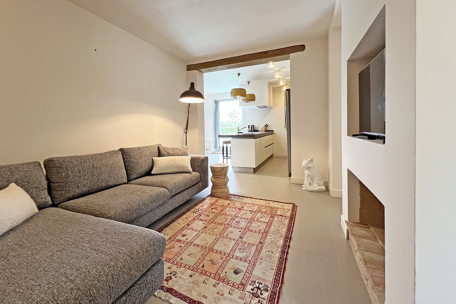Door eerdere verbouwingen waren veel authentieke elementen uit het huis verdwenen of weggewerkt. Mijn doel was om het oorspronkelijke karakter terug te brengen. Oude bakstenen muren, terracotta vensterbanken, houten balkenplafonds en originele tegels kregen opnieuw een prominente plek in het interieur.